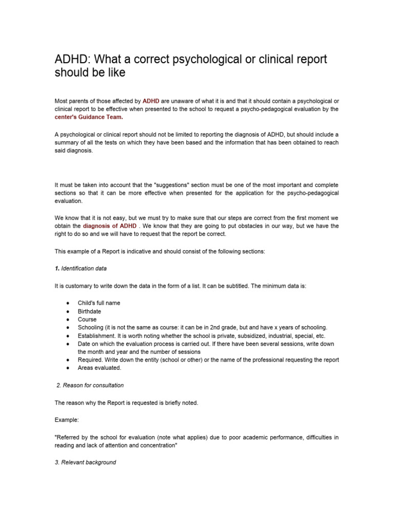 ADHD Report Template | PDF | Attention Deficit Hyperactivity Disorder ...