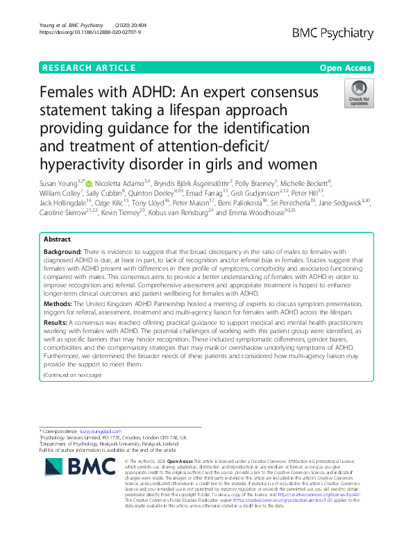 (PDF) Females with ADHD: An expert consensus statement taking a ...