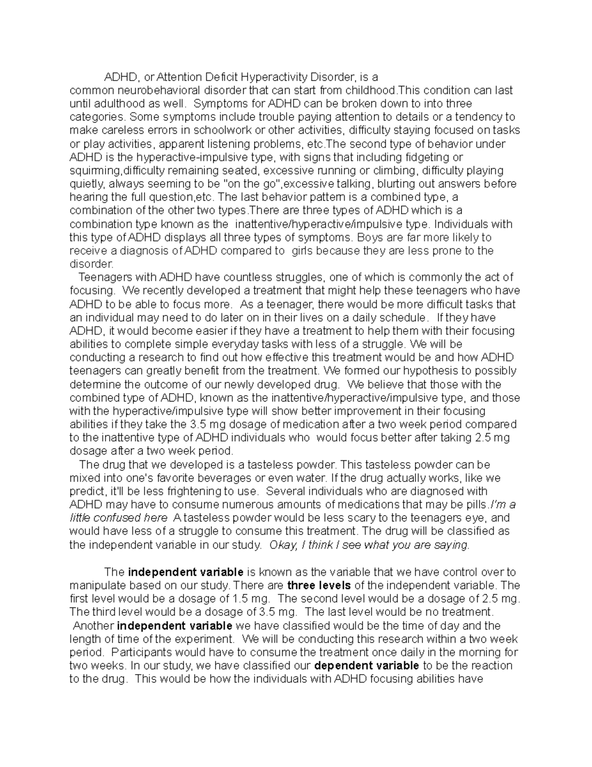 Adhd - Essay for class - ADHD is my disorder that I chose chadd ...