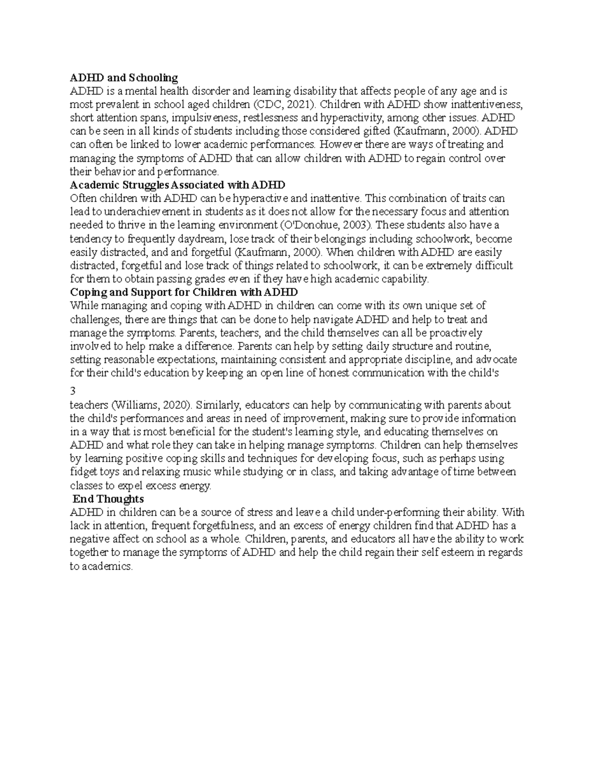 ADHD and Schooling - adhd essay - ADHD and Schooling ADHD is a mental ...