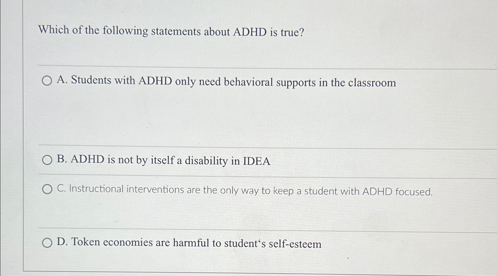 Solved 11 ο»Ώof the following statements about ADHD are true | Chegg.com