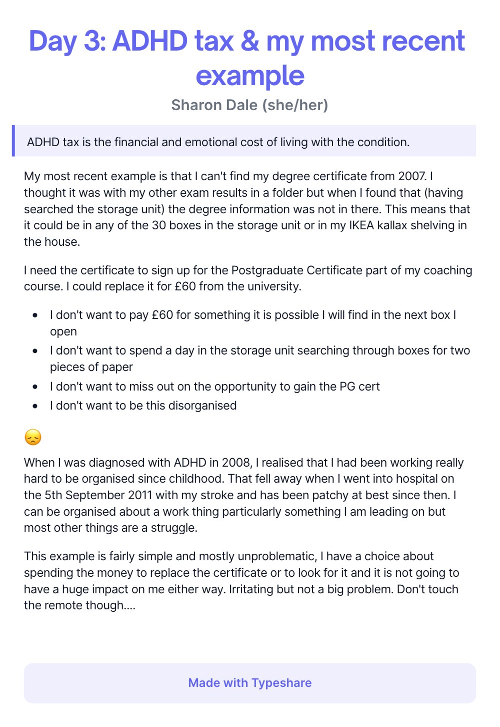 Sharon Dale (she/her) π’ on Twitter: "Day 3: ADHD tax & my most recent ...