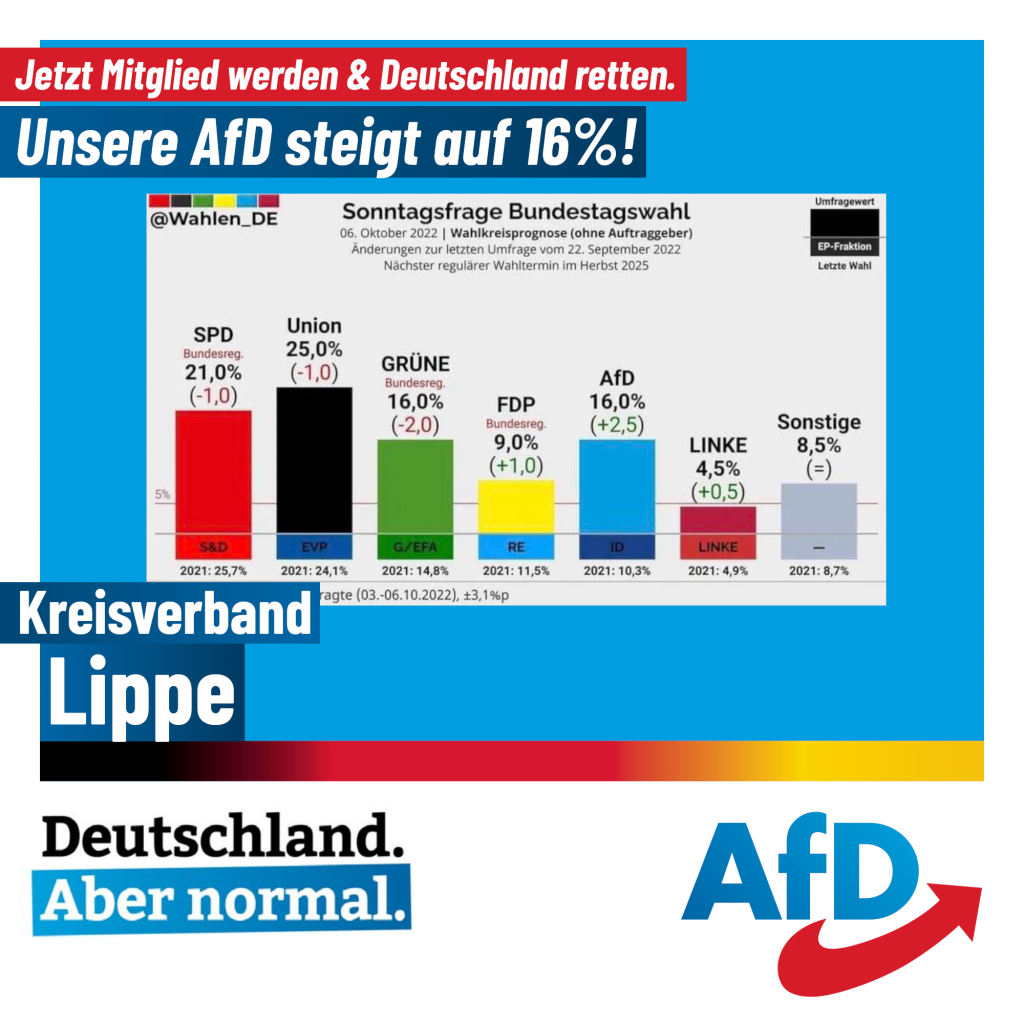 Unsere AfD steigt auf 16%! Jetzt Mitglied werden. – AfD Kreisverband Lippe
