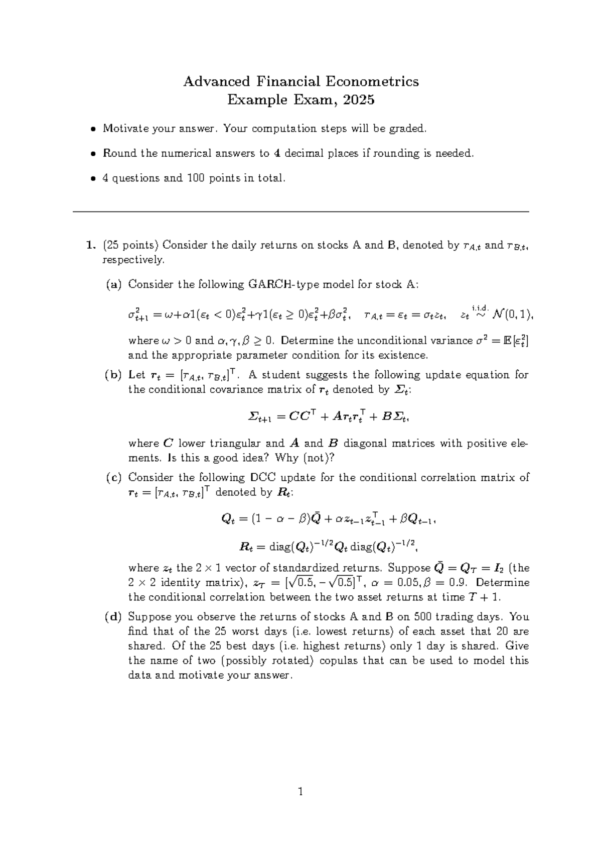 AFE 2025 Advanced Financial Econometrics Example Exam - Studeersnel