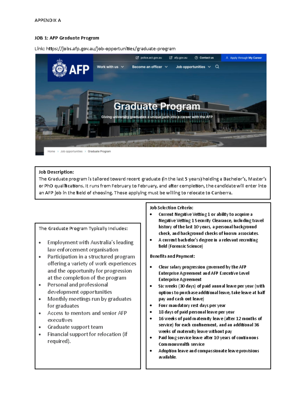 MSP200 Assignment 1 Appendix - JOB 1: AFP Graduate Program Link: - Studocu