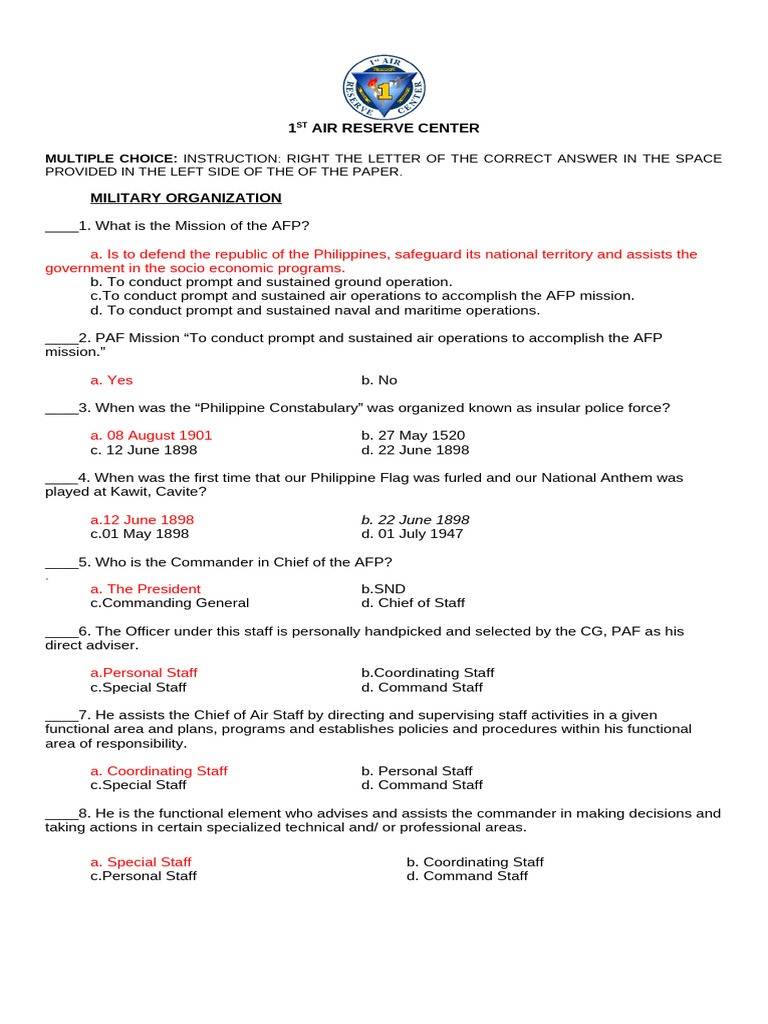 Afp and Major Service History and Organization Probable Questions | PDF ...