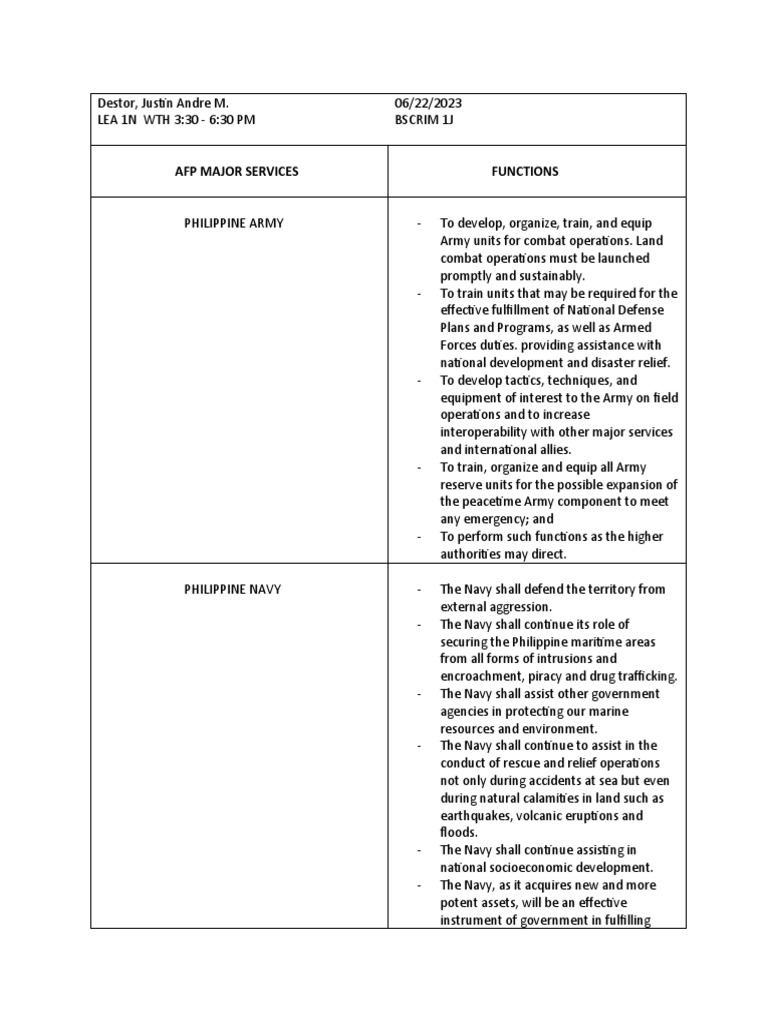 Responsibilities of The 3 Major Services of The AFP | PDF | United ...