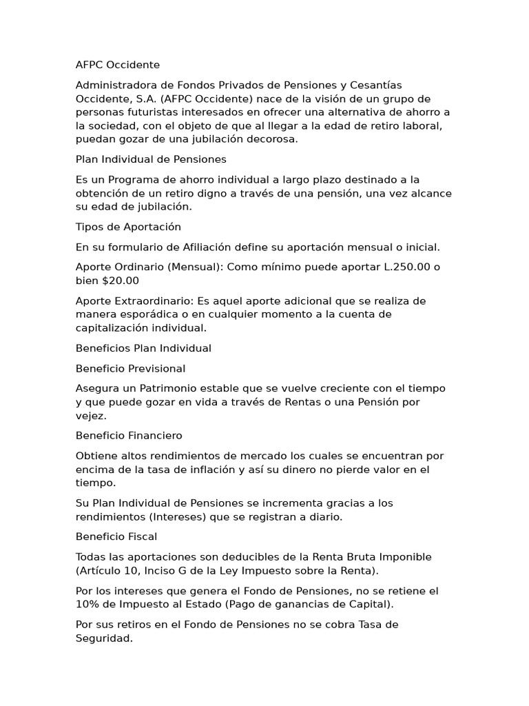 Planes de Pensiones AFPC Occidente | PDF | Pensión | Jubilación