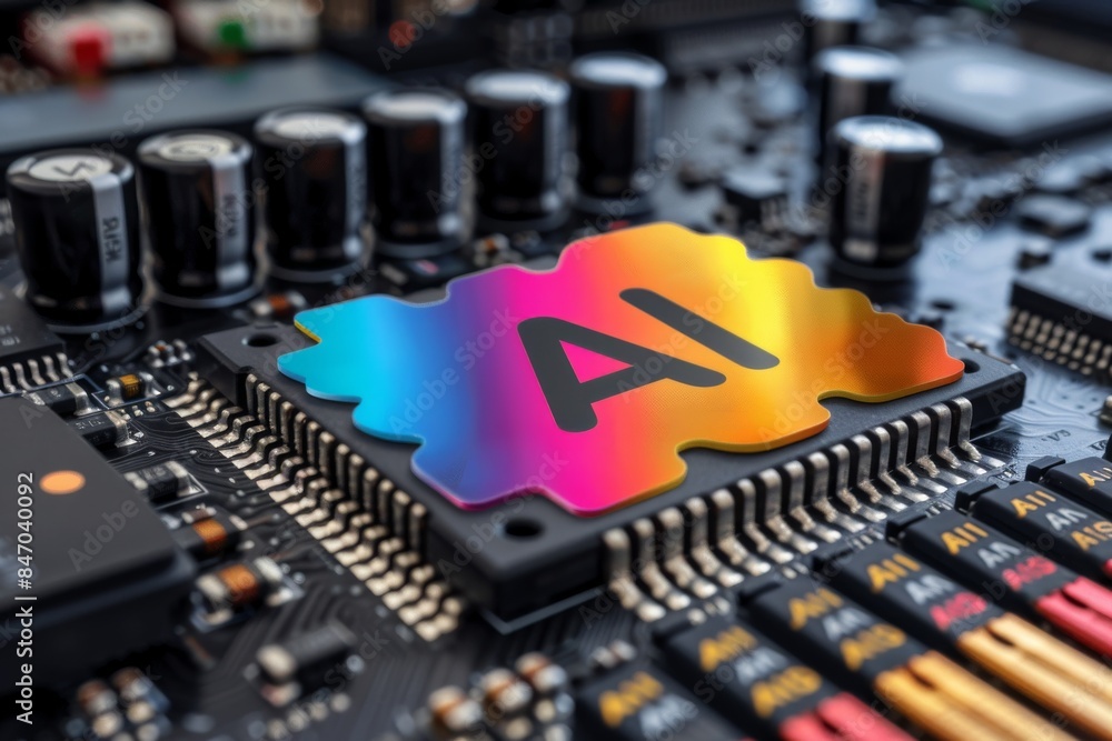 Colorful AI microchip on circuit board artificial intelligence hardware ...