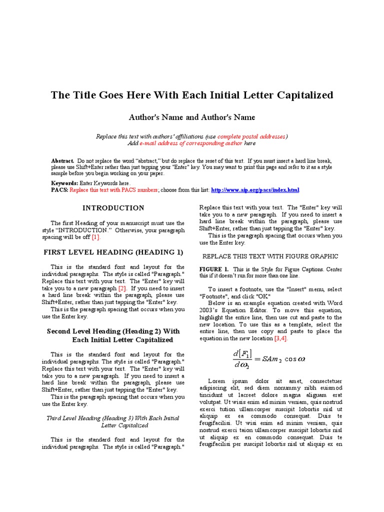 AIP Sample Paper | PDF | Microsoft Word | Page Layout
