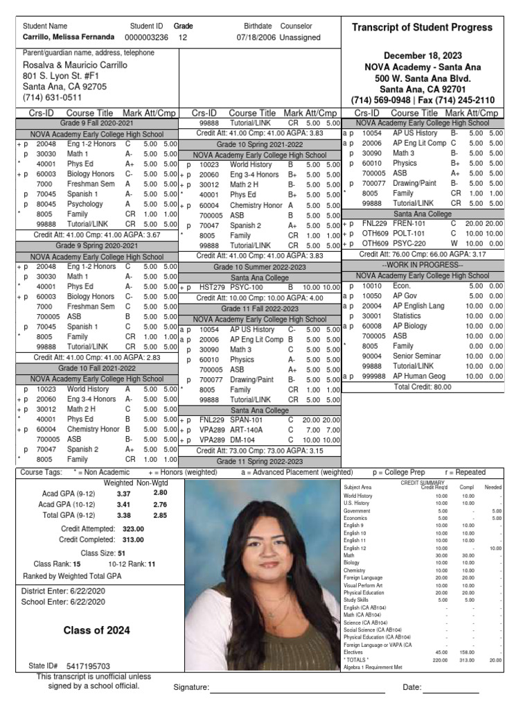 Student Transcript (Unofficial) | PDF