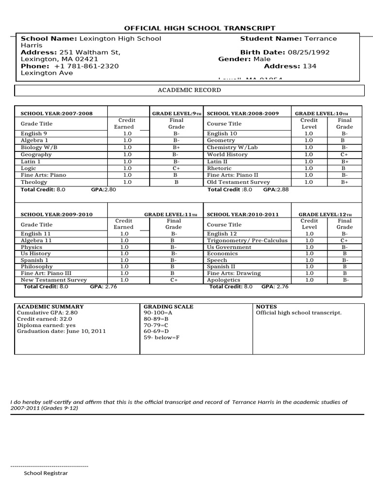 Transcript Lexington High School | PDF