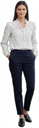 Am Direct Womens Casual High Waist Straight Leg Pants Stretchy Button ...