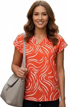Am Direct Women's Summer Tops Short Sleeve Shirt V-Neck Fashion Print ...