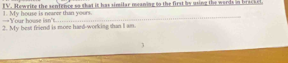 Giải quyết:Rewrite the sentence so that it has similar meaning to the ...