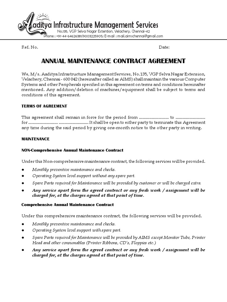 Annual Maintenance Contract Templates In Word Annual Maintenance ...