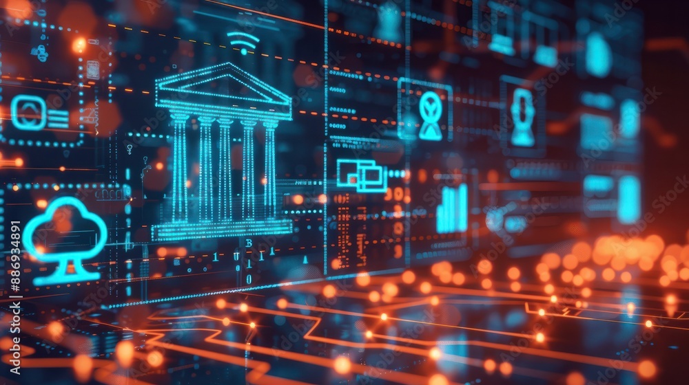 AML Compliance in Digital Banking, digital banking interface with icons ...
