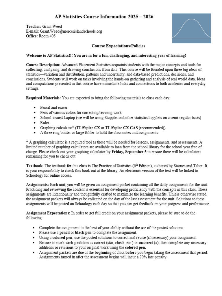 AP Statistics Course Info 2025-2026 | PDF | Academic Integrity | Statistics