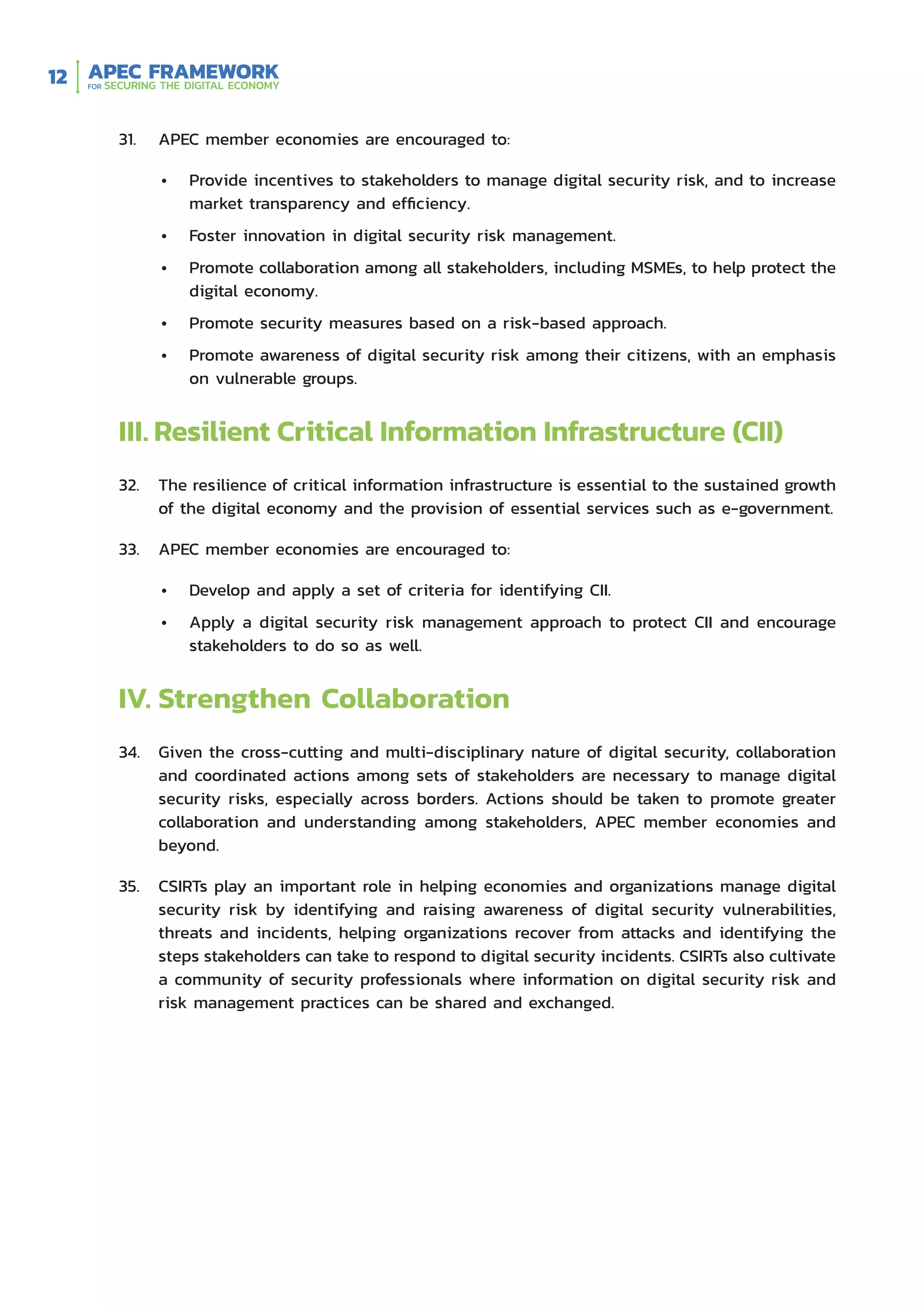 APEC Framework for Securing the Digital Economy | PDF