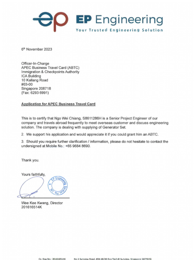 b. Applicant's Company Letter for APEC Card Application to KCCCI | PDF