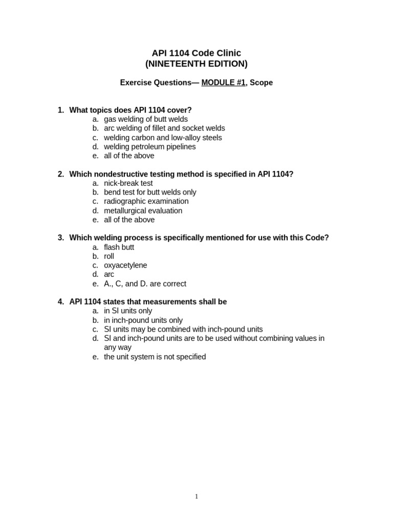 API 1104: 21st Edition Practice Questions | PDF | Welding | Construction