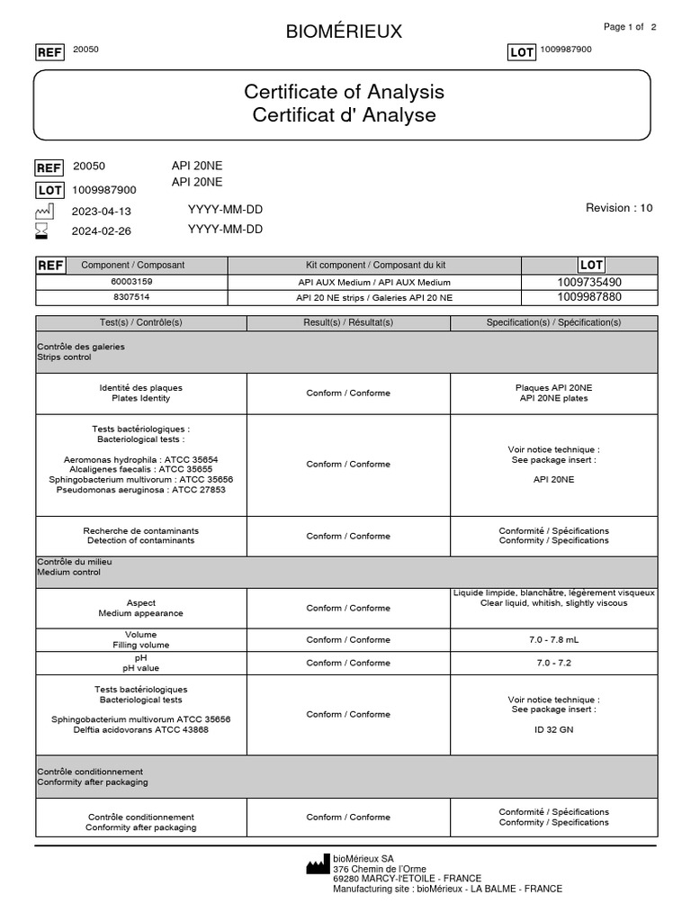The API 20 NE (BioMérieux) is a commercial biochemical identification ...