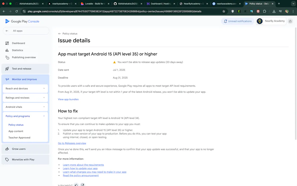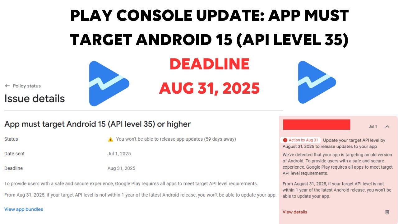 Play Console Update App Must Target Android 15 API Level 35 Tutorial ...