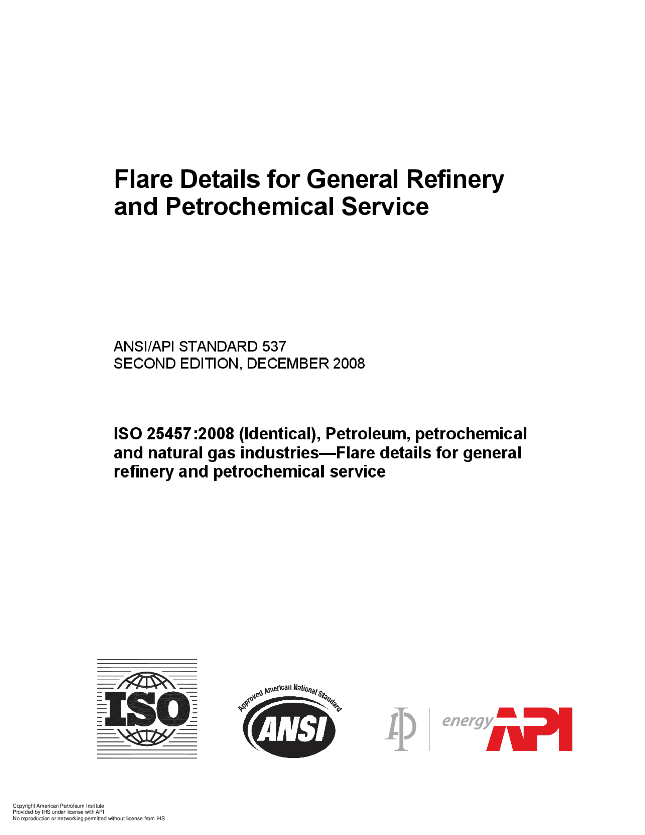 API 537 Flare Details for General Refinery and Petrochemical Service 2008