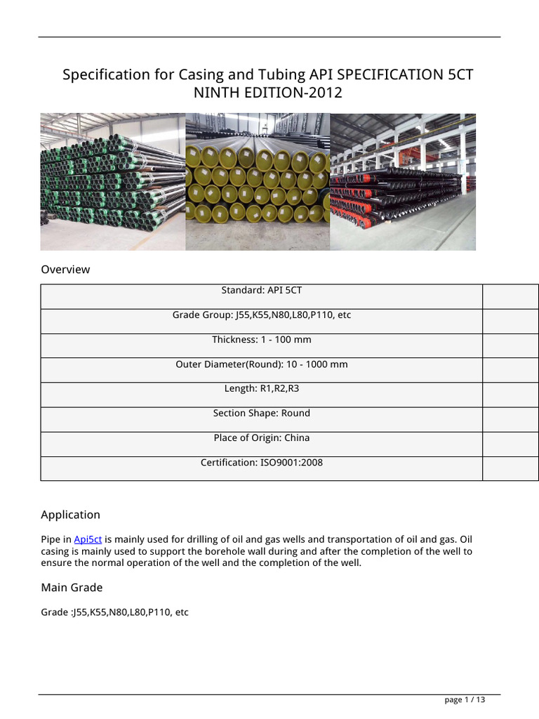 API 5CT Specification for Casing and Tubing | Pipe (Fluid Conveyance ...