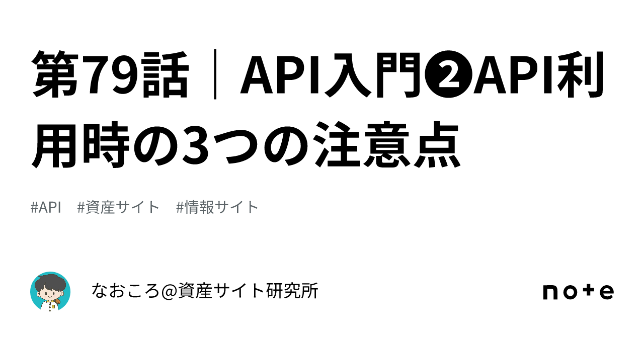 第79話|API入門 API利用時の3つの注意点|なおころ@資産サイト研究所