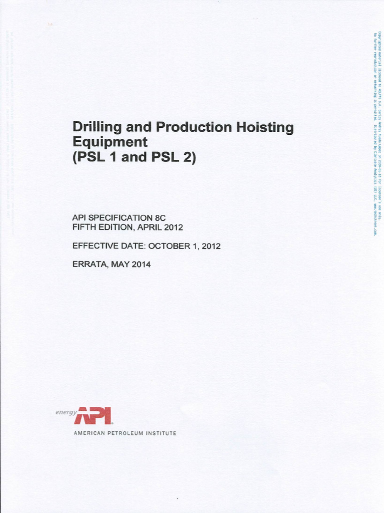 API SPEC 8C: Drilling and Production Hoisting Equipment (PSL 1 and PSL ...