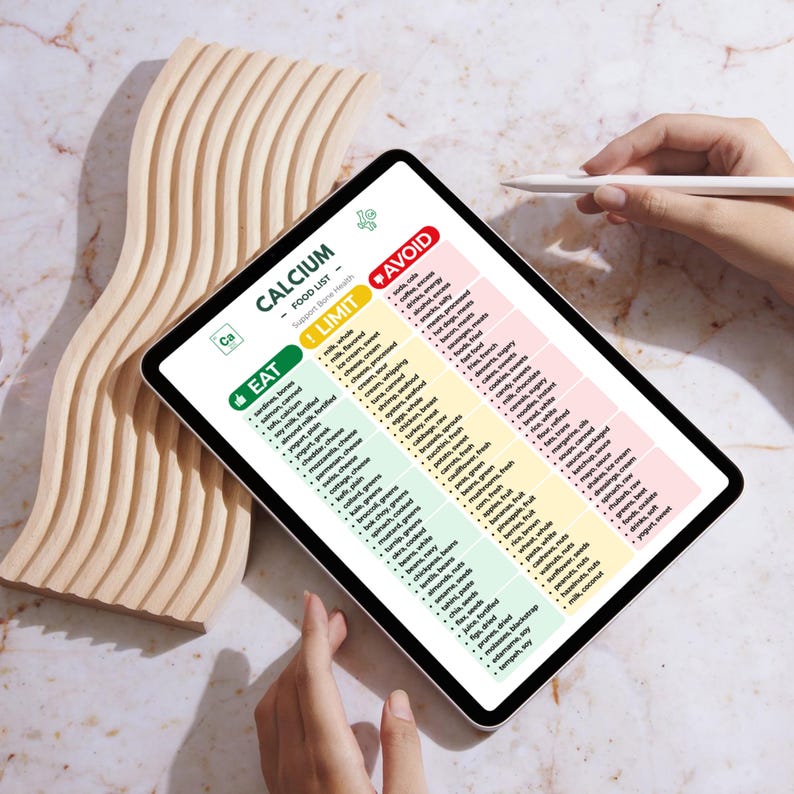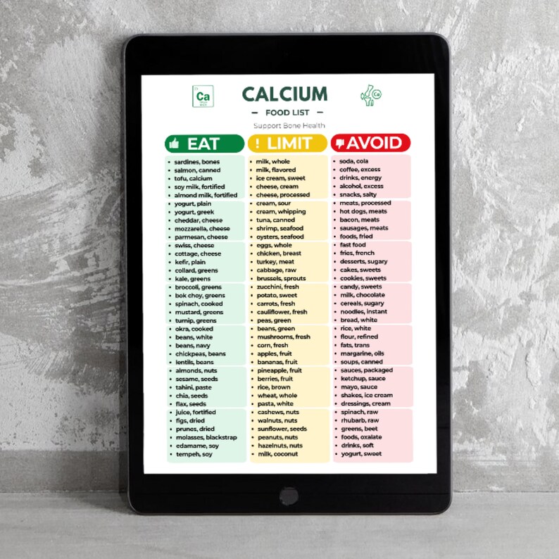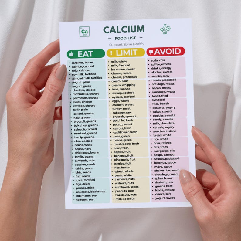 Calcium Food List Chart: Eat, Limit, Avoid Guide (digital Download) - Etsy