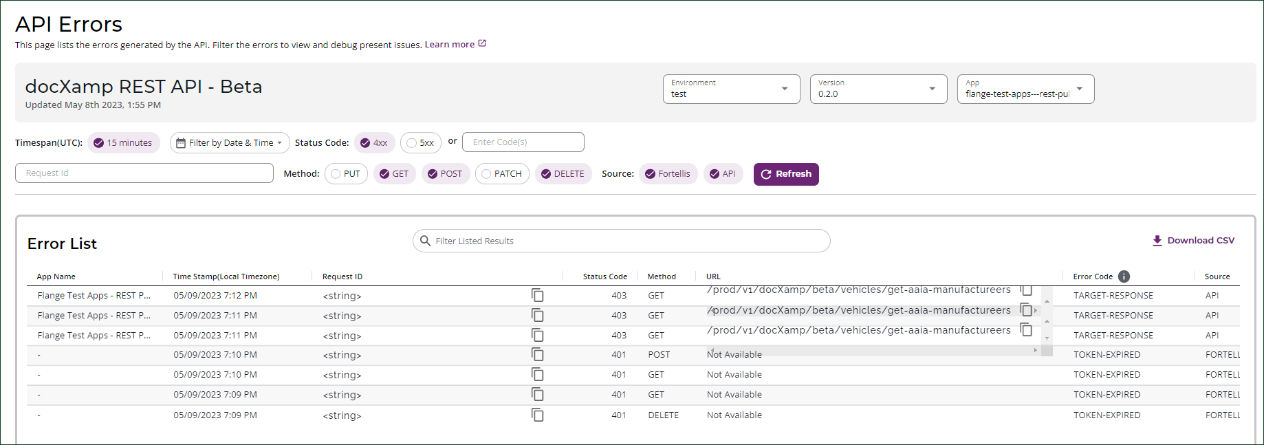 Viewing the API Errors List