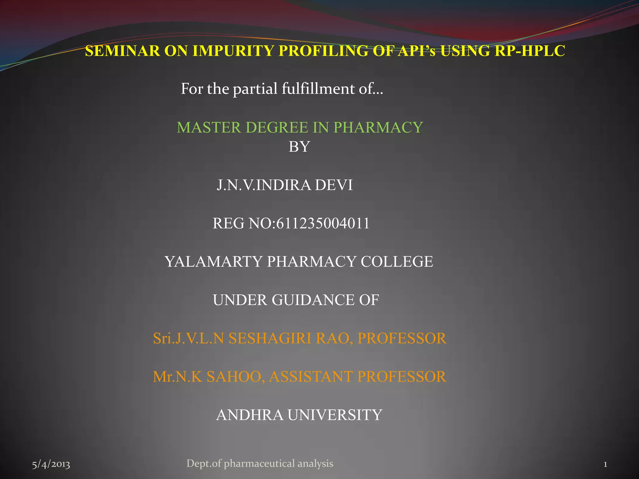 Indu...impurity profiling of api’s using rp hplc as per | PPTX