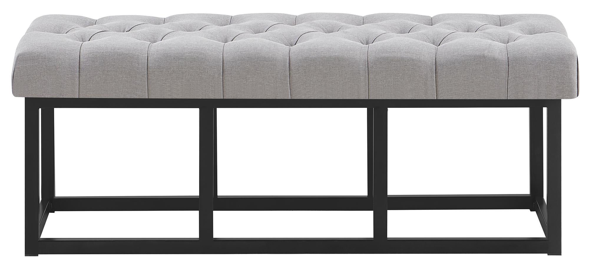 Banc capitonné rembourré 120 cm tissu gris avec structure métal noir ...