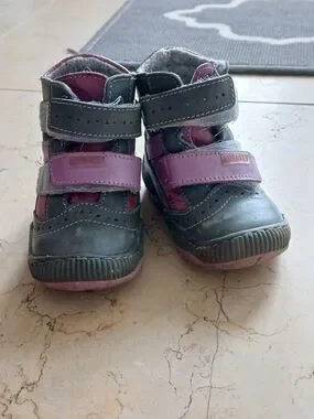 Shoes | Orthopedic Baby Girl Gray And Purple Velcro Boots Leather ...