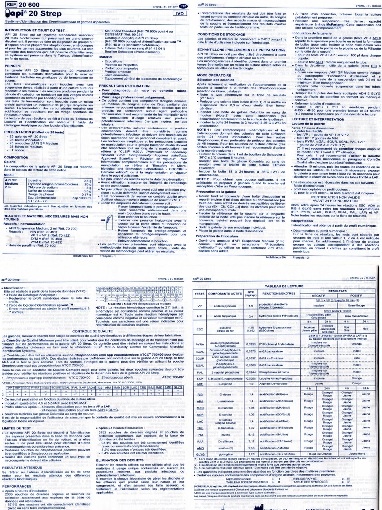 API 20 Strep IVD Identification System Summary (20 600 07625L) - Studocu