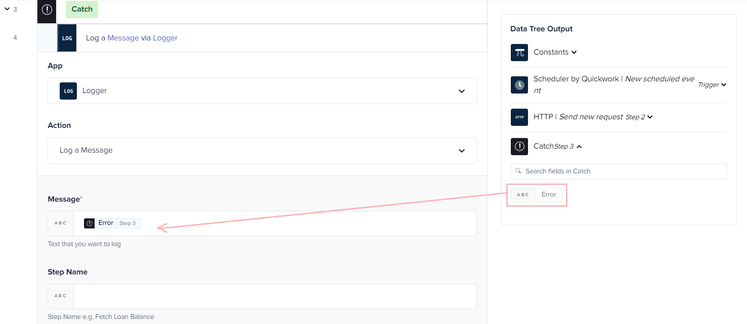 Process using a Try/Catch step to track document errors
