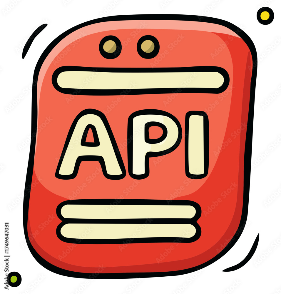 Cartoon illustration of API concept with text inside a red rectangle ...