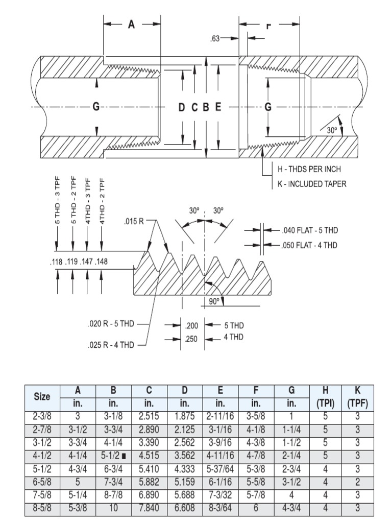 API Thread Chart, API Thread Drawings,API Thread Dimensions, API Thread ...