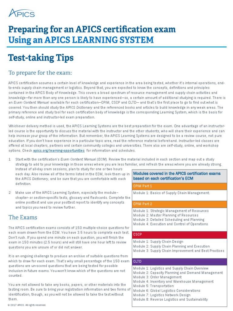 APICS Learning Systems Test-Taking-Tips | PDF | Supply Chain Management ...