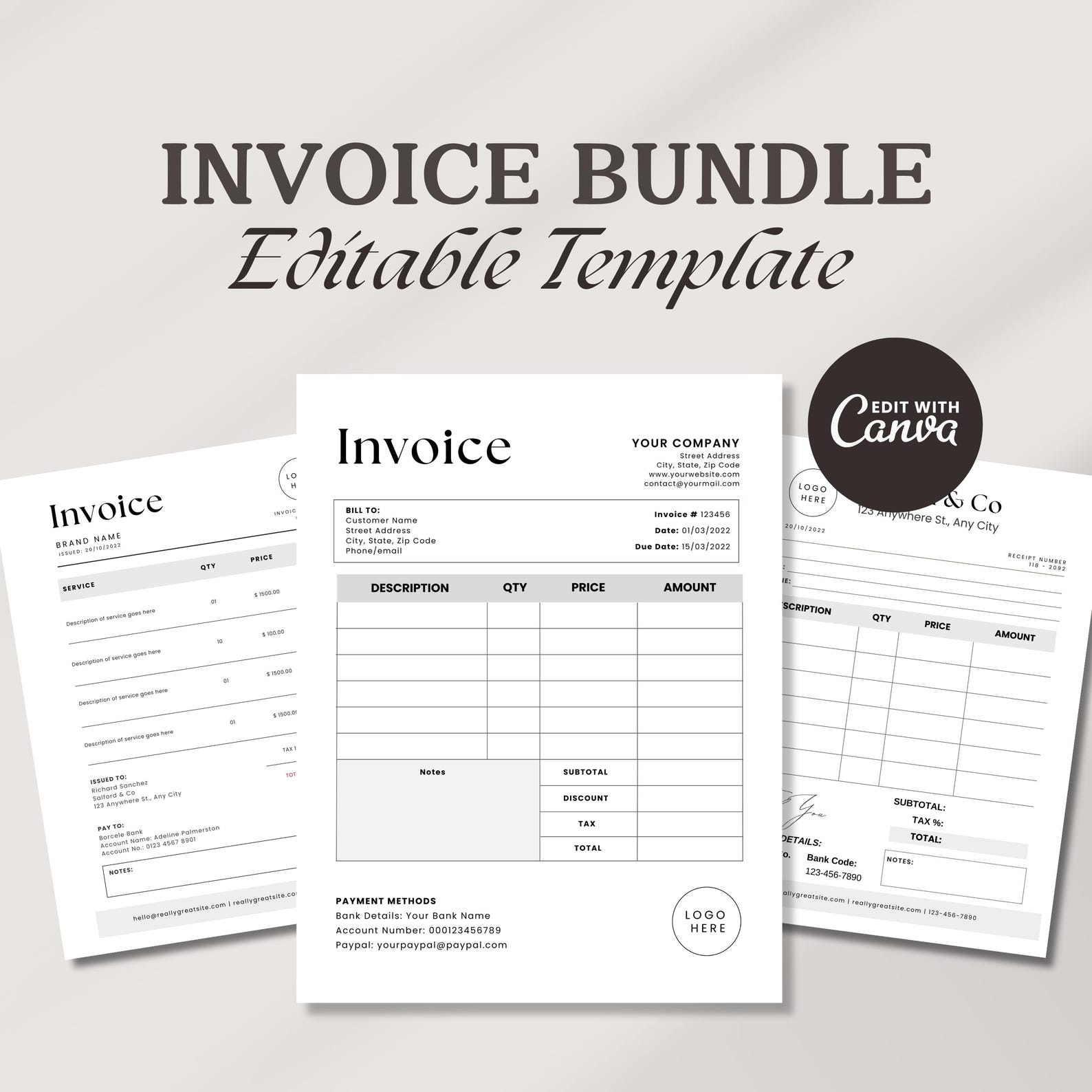Small Business Invoice Editable, Minimalist Invoice Template Word ...