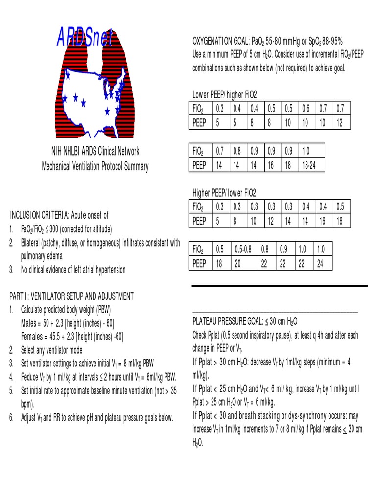 Ardsnet Ventilation Protocol | PDF | Respiration | Pulmonology