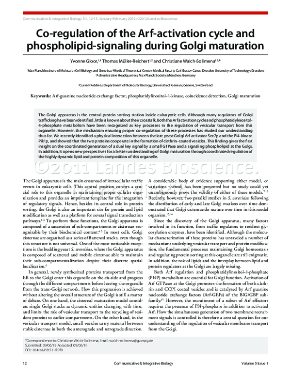 (PDF) Co-regulation of the arf-activation cycle and phospholipid ...