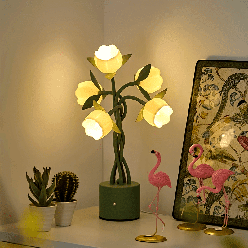 [5-Floral Touch Lamp] 5-Floral Artistic Touch-Controlled USB Table Lamp ...