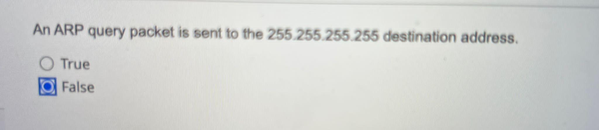 Solved An ARP query packet is sent to the 255.255.255.255 | Chegg.com