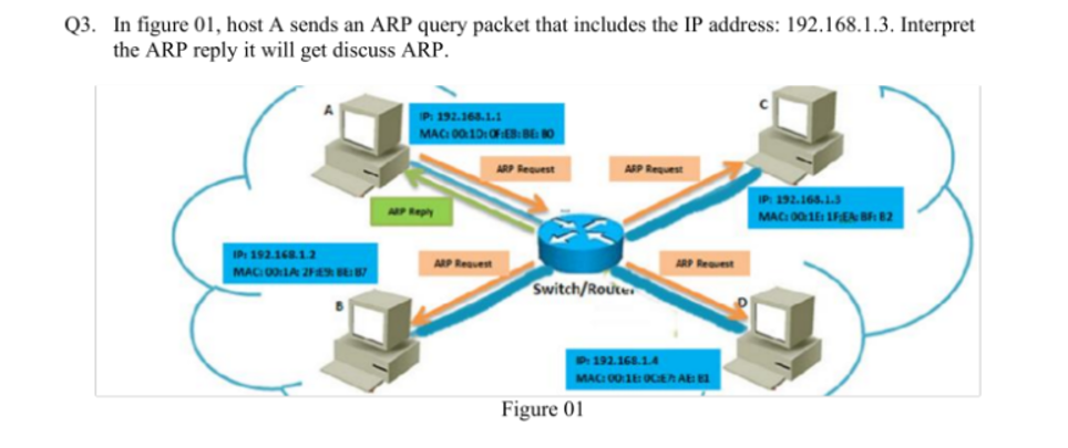 Solved Q3. In figure 01, host A sends an ARP query packet | Chegg.com