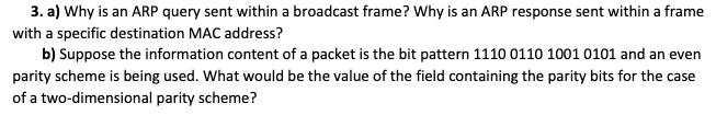 Solved 3. a) Why is an ARP query sent within a broadcast | Chegg.com