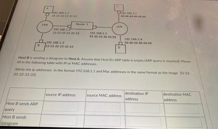 Solved B A Host B sends ARP query Host B sends datagram LAN | Chegg.com