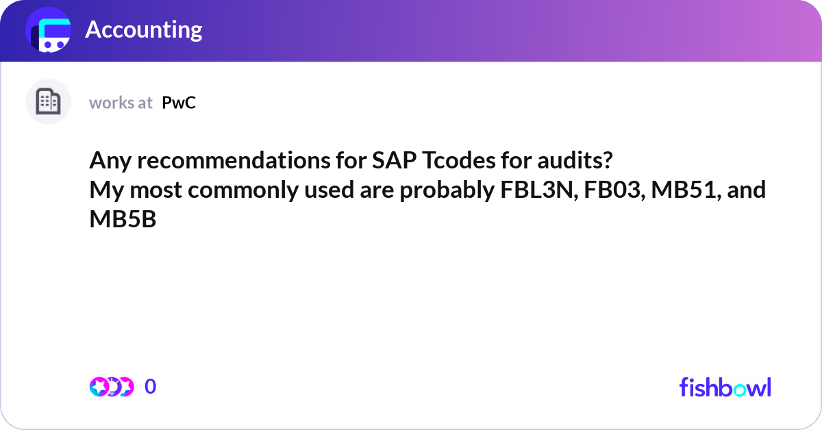 Any recommendations for SAP Tcodes for audits? My ... | Fishbowl